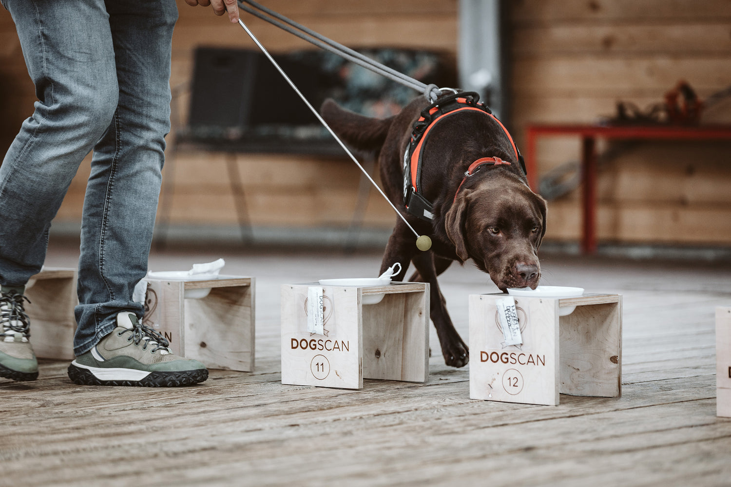 Die Hunde müssen regelmäßig einen Leistungsnachweis erbringen und in diesem mehr als 2.500 Proben erschnüffeln.