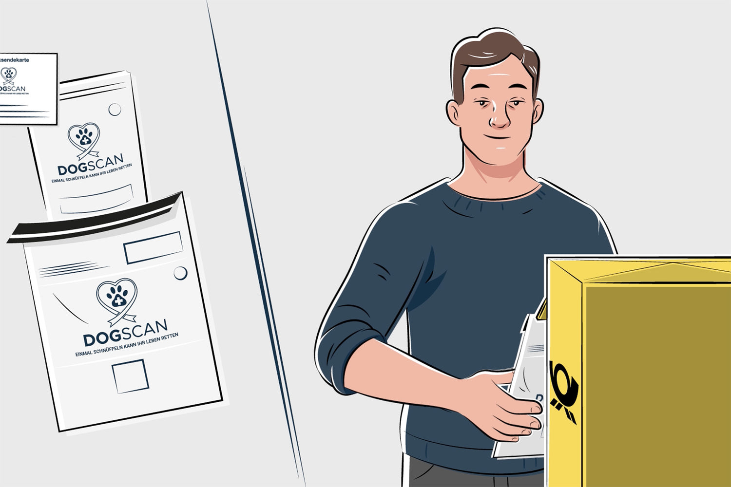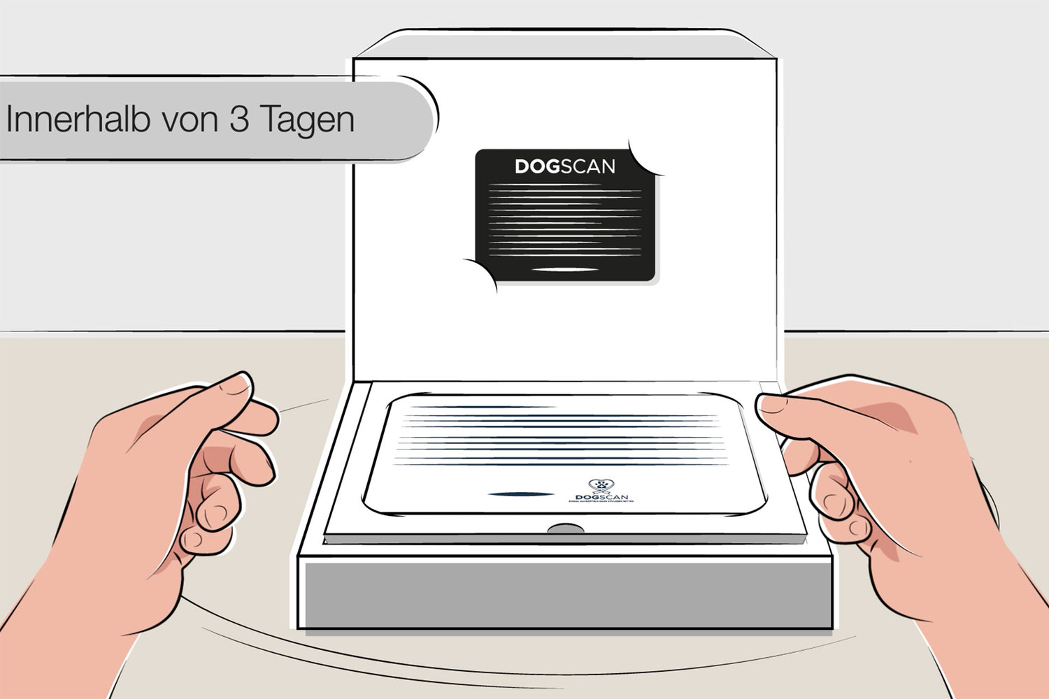 Nachdem 5 Hunde unseres 4-Pfoten-Teams an der Maske geschnüffelt haben, erhältst du das Testergebnis sicher und vertraulich spätestens 7 Tage nach Einsendung.