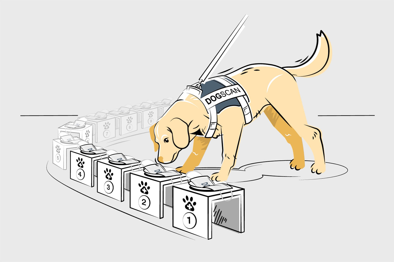 Ihre Probe wird von mind. 5 Hunden unabhängig untersucht. Das bedeutet, dass weder der Hundehalter, noch der Hund wissen dürfen, ob und wo der vorherige Hund angezeigt habt.