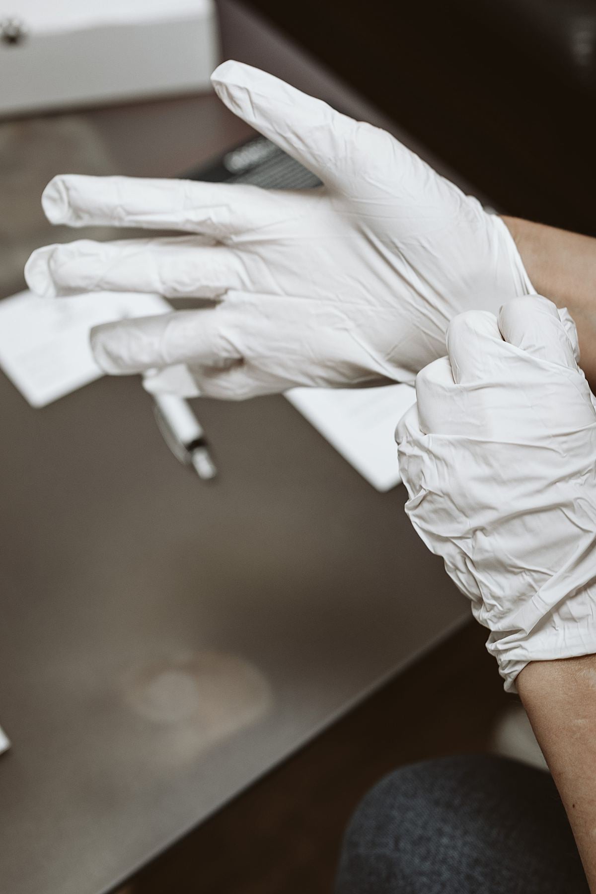 Ziehen Sie die mitgelieferten Handschuhe (1) an, oder waschen Sie sich gründlich die Hände.