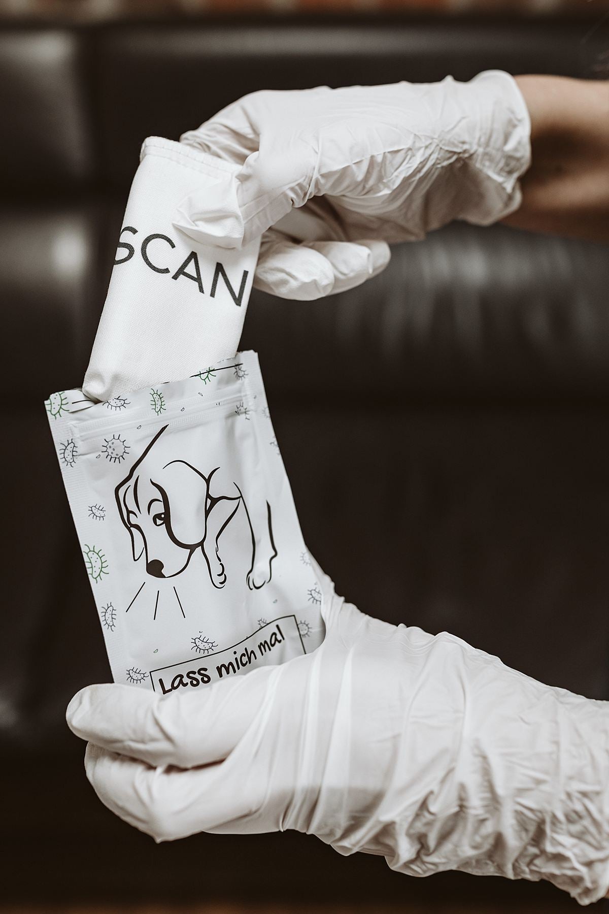 Unsere Hunde werden nun unabhängig voneinander Ihre Maske untersuchen. Das Ergebnis wird Ihnen in den nächsten 14 Tagen postalisch zugesandt.